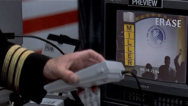 The hands that erase the evidence are no longer under control of the human being attached to them. They are controlled by the insane mission that has taken him over. This obsession, like the corporate new world, doesn’t have any human values at all. This is also underlined by the tormented grin on the actor’s face. It’s disfigured and removed from who he used to be.